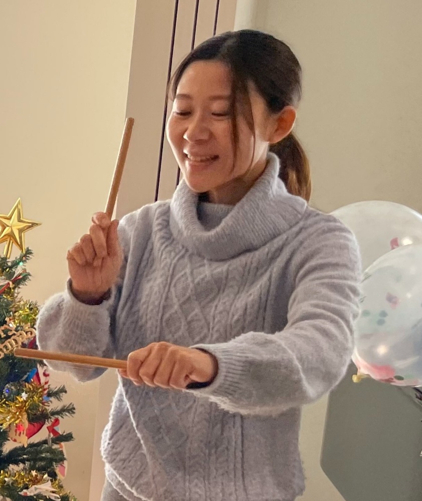 音楽教室に勤めて、初めてリトミックに出会い、小さな子どもたちが、楽しそうに動いたり、自由に表現したりする姿、キラキラした目や笑顔を見て、とても良いものだと感じました